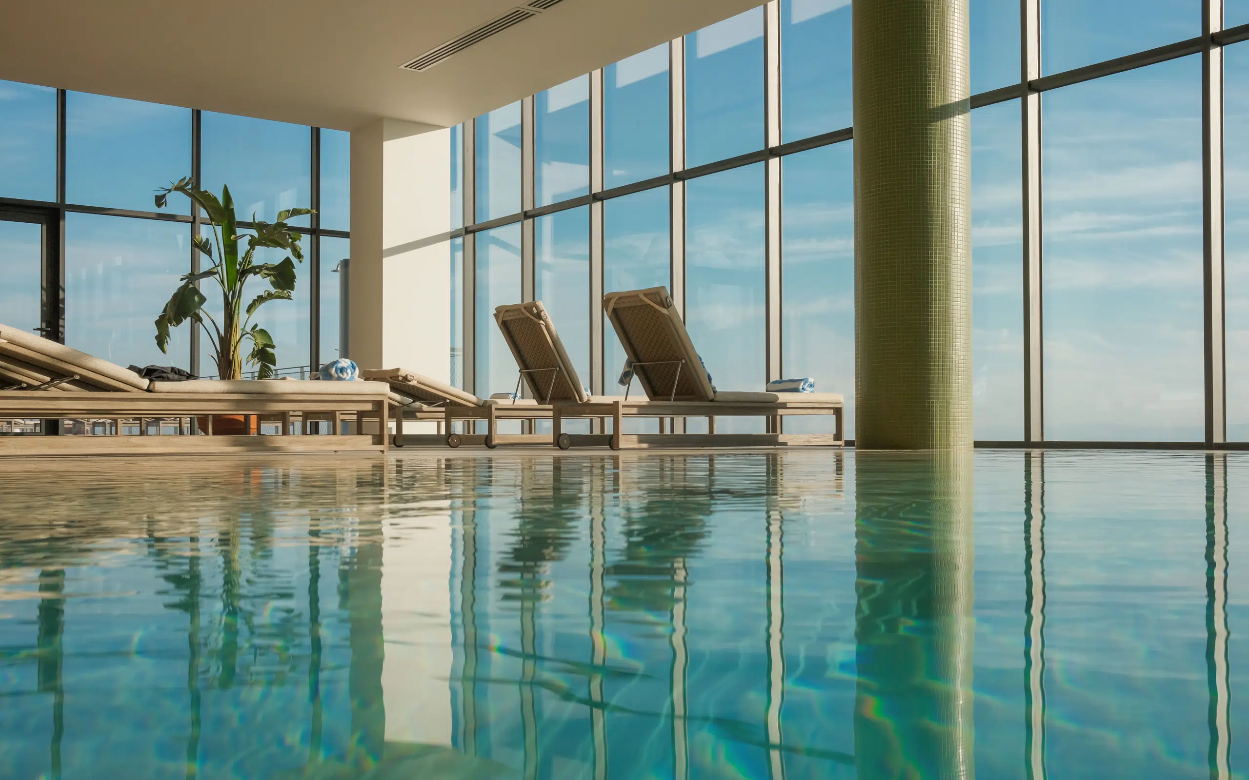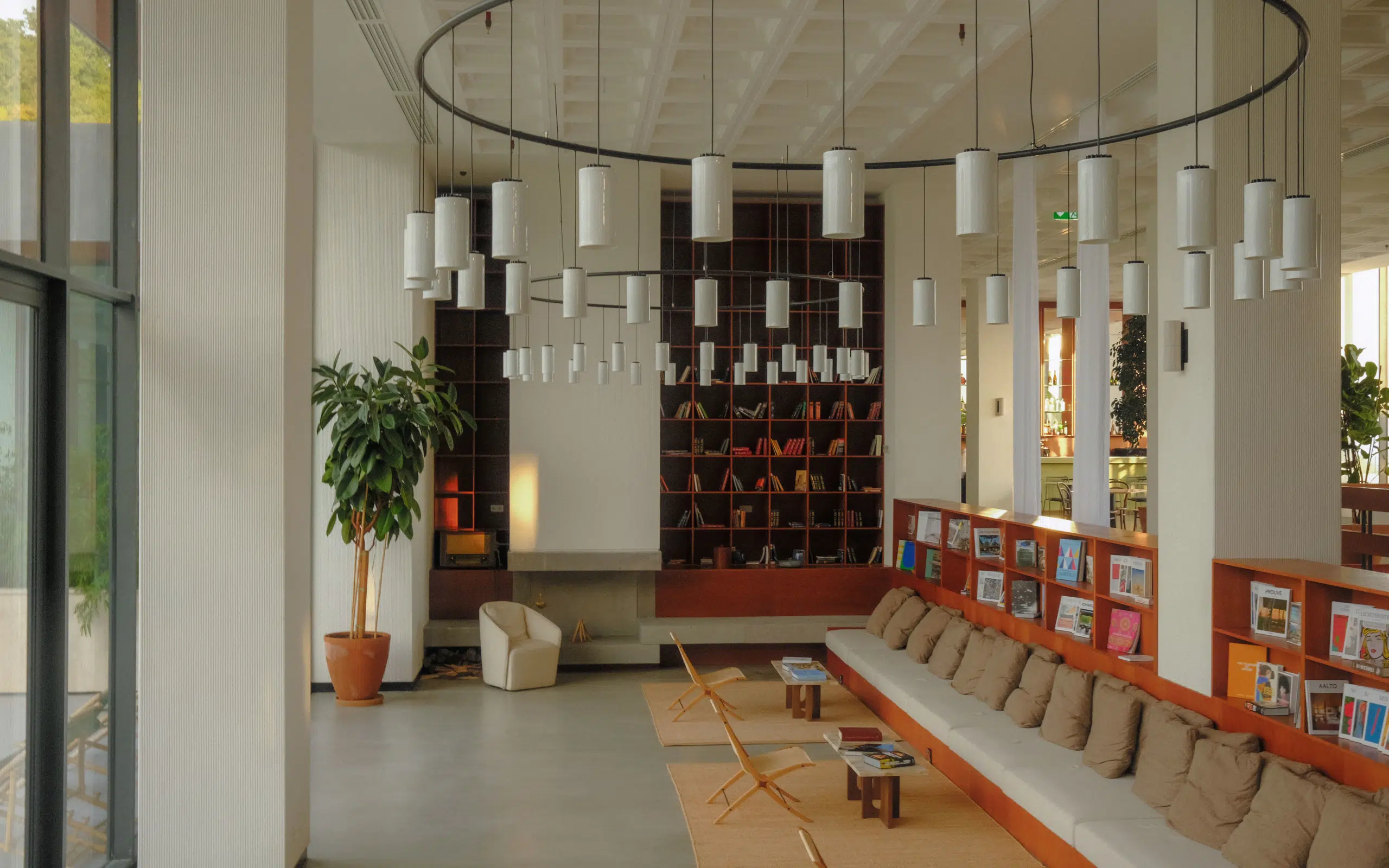 Guests can take advantage of two conference halls—one in the first building accommodating up to 300 guests, and another in the second building for 80 attendees—as well as a bar-restaurant, bike paths, a swimming pool, and wellness and entertainment spaces.
